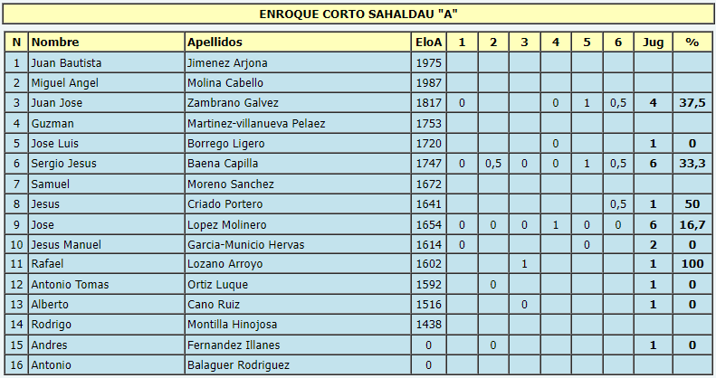 En cuanto a la representación por parte del Club de Ajedrez Enroque Corto Sahaldau de Puente Genil, ha participado con 2 equipos, uno en Preferente y otro en Primera, con un total de 26 jugadores.